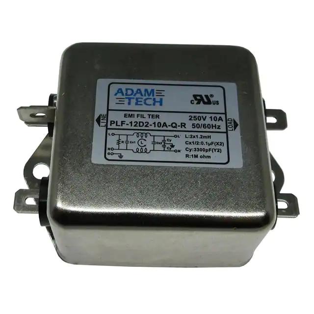 This is manufactured by Adam Tech. The manufacturer part number is PLF-12D2-10A-Q-R. The product has 115v, 250v AC voltage rating. It is assigned with possible HTSUS value of 8548.00.0000. The product is rohs3 compliant. Moreover, it has quick connect terminal style. Features a 10 a current in A. The product has -25°c ~ 85°c operating temperature range. It is approved by curus. In addition, it is reach unaffected. The product has a 1.2mh inductance value. The product is available in single stage configuration. It is shipped in tray. Its typical moisture sensitivity level is not applicable. The filter is a single phase type with excellent features. It has a long 10 weeks standard lead time. The product is available in chassis mount configuration. The product plf, is a highly preferred choice for users. Features an operating frequency of 50 ~ 60hz. The product is designated with the ear99 code number