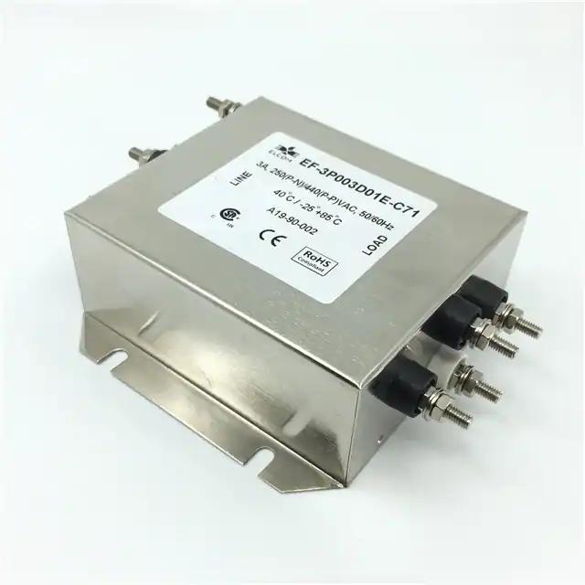 This is manufactured by Elcom International Pvt Ltd. The manufacturer part number is EF-3P020D02E-C71. It is assigned with possible HTSUS value of 8536.30.0000. The product is rohs compliant. Moreover, it has terminal block terminal style. Features a 20 a current in A. The product has -25°c ~ 85°c operating temperature range. It is approved by ce, ccsaus. In addition, it is reach unaffected. The product is widely employed in general purpose. It is shipped in box. Retains 500v DC rated voltage. Its typical moisture sensitivity level is 2 (1 year). The filter is a three phase (wye) type with excellent features. The product is available in chassis mount configuration. Features an operating frequency of 50 ~ 60hz.