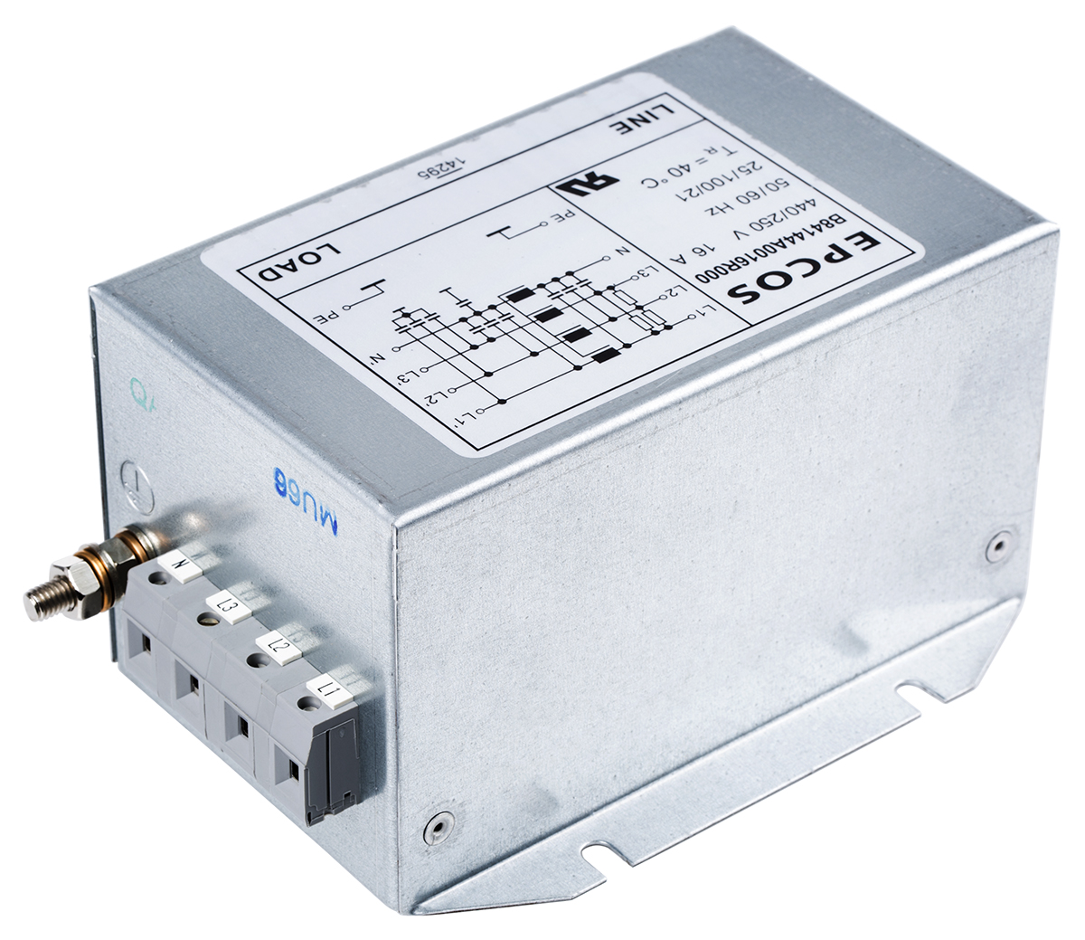This is B84144A*R000 Series 16A 250 V ac 440 V ac 50 → 60Hz Flange Mount RFI Filter with Tab Terminals 3 Phase manufactured by EPCOS. The manufacturer part number is B84144A0016R000. The given dimensions of the product include 113 x 163 x 81mm. The product is available in flange mount configuration. The product b84144a*r000, is a highly preferred choice for users. Moreover, it has tab terminal style. Its accurate length is 559mm. In addition, the height is 81mm. The product comes in 163mm depth. It has a maximum operating temperature of +100°c. Whereas, the minimum operating temperature of the product is -25°c. It carries 10mω resistance.