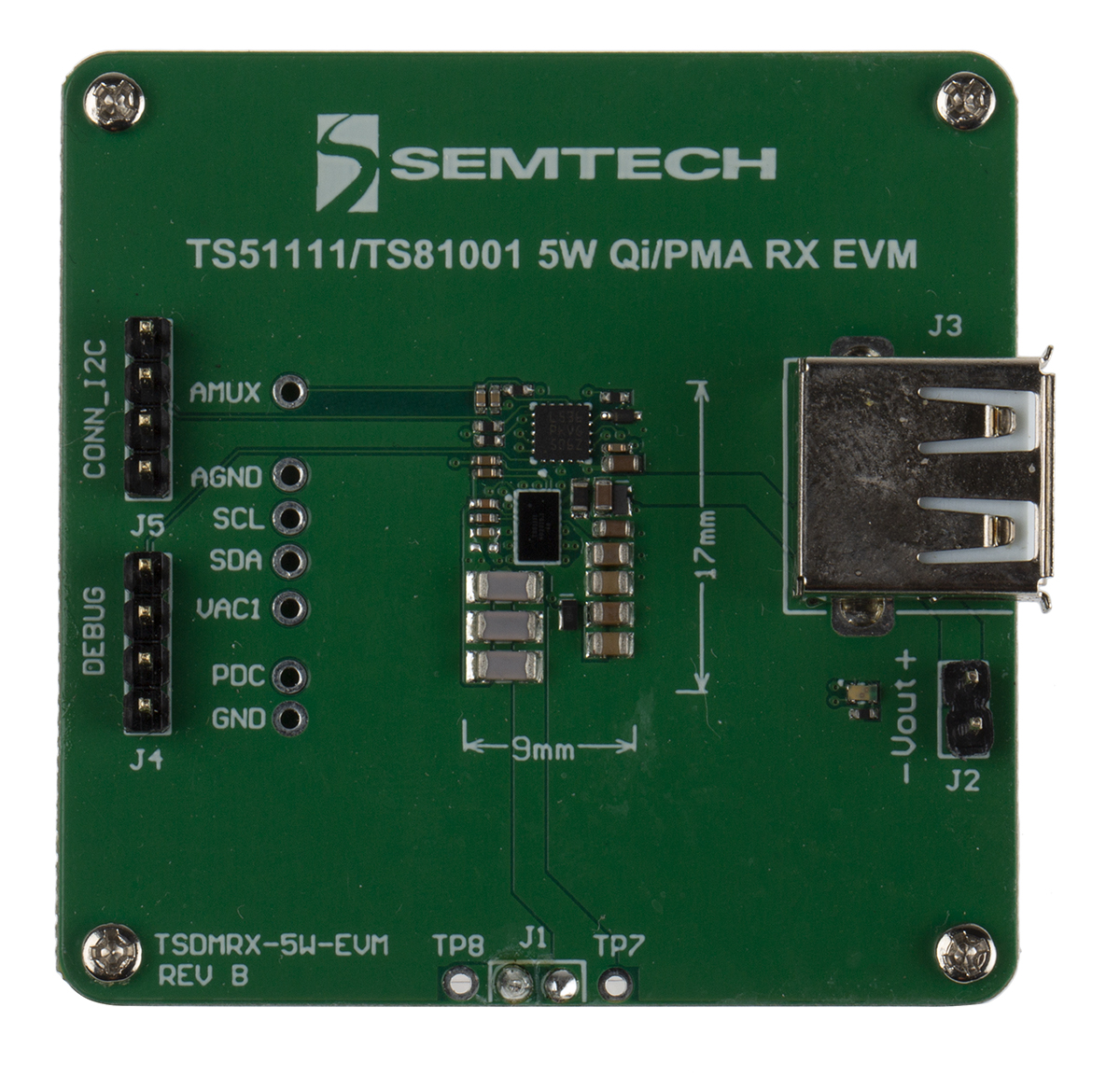 This is Wireless Charging EVM Firmware Wireless Power Receiver for Module manufactured by Semtech. The manufacturer part number is TSDMRX-5W-EVM.
