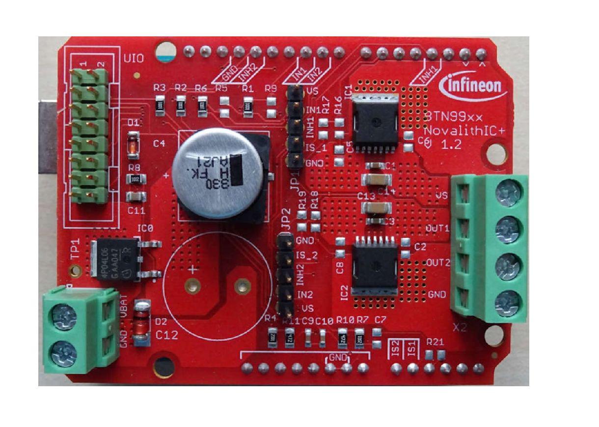 This is BTN9970 / BTN9990 Motor Control Shield Motor Control for BTN9970LV manufactured by Infineon. The manufacturer part number is DCSHIELDBTN9970LVTOBO1.