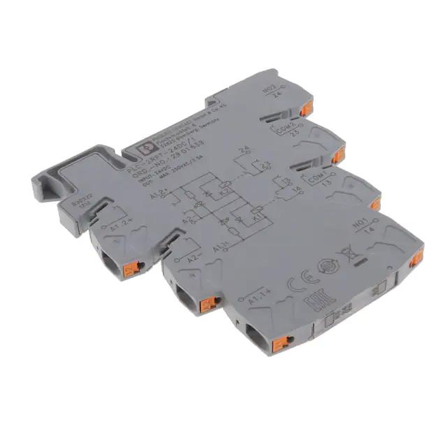 This is manufactured by Phoenix Contact. The manufacturer part number is 2901639. The given dimensions of the product include 80 x 6.2 x 86mm. The product is available in din rail configuration. The product plc-2rpt-24dc/1, is a highly preferred choice for users. The product comes in 6.2mm depth. In addition, the height is 86mm. Its accurate length is 80mm. Whereas, the minimum operating temperature of the product is -20°c. It has a maximum operating temperature of +60°c. The terminal is a push in type. The product is made from sturdy silver alloy materials. It is assigned with possible HTSUS value of 8536.41.0030. The product is rohs compliant. The coil voltage of the product is 24vdc. Moreover, it has spring terminal terminal style. The product has -20°c ~ 60°c operating temperature range. It holds up to 3.43 kohms coil resistance. It has a coil current of 7 ma. The coil is a non latching type. The product's switching voltage is 250vac, 30vdc - max. This is basically a general purpose. It is shipped in bulk. It also has a spst-no (1 form a) x 2 contact form. Its typical moisture sensitivity level is 1 (unlimited). The operating time of the product is 4 ms. It has a long 4 weeks standard lead time. It has a contact current rating of 3.5 a. The splendid features of the product include diode, lighted indicator, socket included. The product plc-rpt, is a highly preferred choice for users. While 6 ms is its release time. The product is made from sturdy silver nickel (agni) materials. The product is designated with the ear99 code number