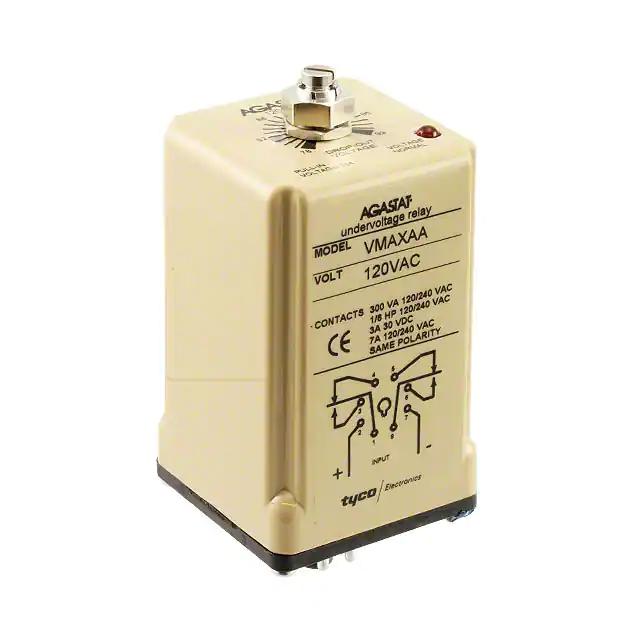 This is manufactured by TE Connectivity Aerospace, Defense and Marine. The manufacturer part number is VMAXAA. It is assigned with possible HTSUS value of 8536.49.0080. The product is rohs non-compliant. The coil voltage of the product is 120vac. Moreover, it has plug in, 8 pin (octal) terminal style. The product has -10°c ~ 55°c operating temperature range. The coil is a non latching type. The product's switching voltage is 250vac - nom. On the other hand, 104 vac is the given crucial/must operating voltage. This is basically a general purpose. It is shipped in bulk. It also has a dpdt (2 form c) contact form. Its typical moisture sensitivity level is 1 (unlimited). While the must release voltage is a 78 vac. It has a long 14 weeks standard lead time. It has a contact current rating of 7 a. The splendid features of the product include lighted indicator. The product is available in socketable configuration. The product vma, agastat, is a highly preferred choice for users. The product is designated with the ear99 code number Moreover, it corresponds to vmax, a base product number of the product.