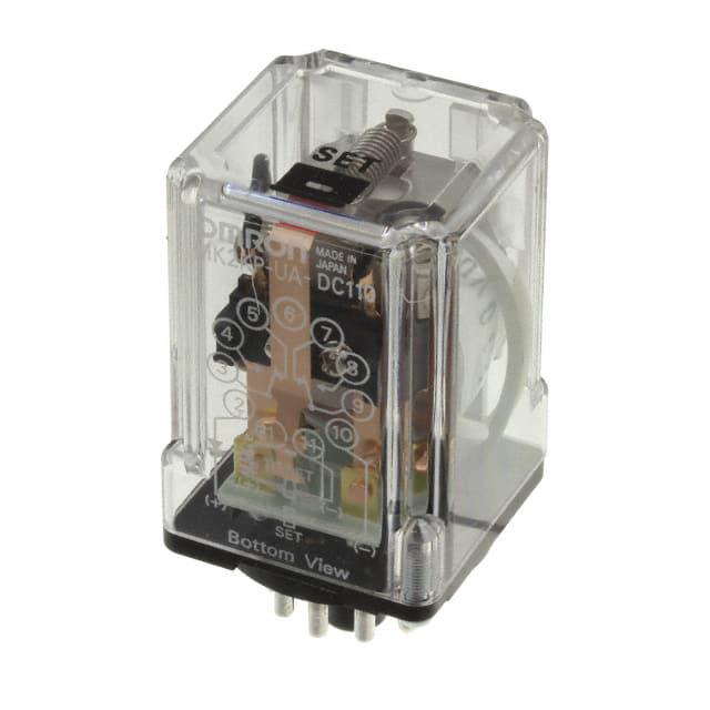 This is manufactured by Omron Automation and Safety. The manufacturer part number is MK2KP-UA-DC110. It is assigned with possible HTSUS value of 8536.49.0050. The product is rohs compliant. The coil voltage of the product is 110vdc. Moreover, it has plug in, 11 pin (octal) terminal style. The product has -10°c ~ 40°c operating temperature range. It holds up to 4.16 kohms coil resistance. It has a coil current of 26.4 ma. The coil is a latching, dual coil type. The product's switching voltage is 250vac, 250vdc - max. On the other hand, 88 vdc is the given crucial/must operating voltage. This is basically a general purpose. It is shipped in bulk. It also has a dpdt (2 form c) contact form. Its typical moisture sensitivity level is 1 (unlimited). The operating time of the product is 30 ms. It has a long 10 weeks standard lead time. It has a contact current rating of 5 a. The product is available in socketable configuration. The product mkk, is a highly preferred choice for users. While 30 ms is its release time. The product is designated with the ear99 code number Moreover, it corresponds to mk2kp, a base product number of the product. The product is made from sturdy silver (ag) materials.