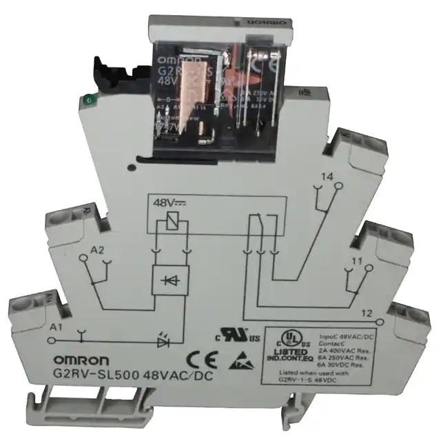 This is manufactured by Omron Automation and Safety. The manufacturer part number is G2RV-SL500 AC/DC48. It is assigned with possible HTSUS value of 8536.41.0020. The coil voltage of the product is 48vac/dc. Moreover, it has spring terminal terminal style. The product has -40°c ~ 55°c operating temperature range. It has a coil current of 5.2 ma. The coil is a non latching type. The product's switching voltage is 440vac, 125vdc - max. On the other hand, 38.4 vac/dc is the given crucial/must operating voltage. This is basically a general purpose. It is shipped in bulk. It also has a spdt (1 form c) contact form. Its typical moisture sensitivity level is not applicable. The operating time of the product is 20 ms. While the must release voltage is a 4.8 vac/dc. It has a contact current rating of 6 a. The splendid features of the product include socket included. The product is available in din rail configuration. The product g2rv, is a highly preferred choice for users. While 40 ms is its release time. The product is designated with the ear99 code number The product is made from sturdy silver tin indium (agsnin) materials.