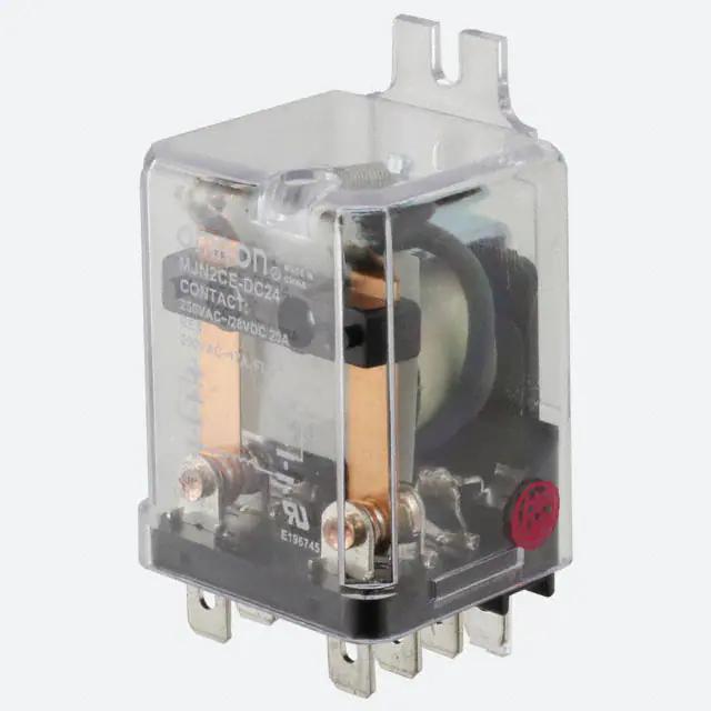 This is manufactured by Omron Automation and Safety. The manufacturer part number is MJN2CE-DC24. It is assigned with possible HTSUS value of 8536.41.0050. The product is rohs compliant. The coil voltage of the product is 24vdc. Moreover, it has quick connect - 0.250" (6.3mm) terminal style. The product has -45°c ~ 70°c operating temperature range. It holds up to 470 ohms coil resistance. It has a coil current of 50 ma. The coil is a non latching type. The product's switching voltage is 600vac, 28vdc - max. On the other hand, 18 vdc is the given crucial/must operating voltage. This is basically a general purpose. It is shipped in bulk. It also has a dpdt (2 form c) contact form. Its typical moisture sensitivity level is 1 (unlimited). The operating time of the product is 20 ms. It has a long 27 weeks standard lead time. It has a contact current rating of 20 a. The product is available in chassis mount configuration. The product mjn, is a highly preferred choice for users. While 10 ms is its release time. The product is made from sturdy silver alloy materials. Moreover, it corresponds to mjn2c, a base product number of the product. The product is designated with the ear99 code number