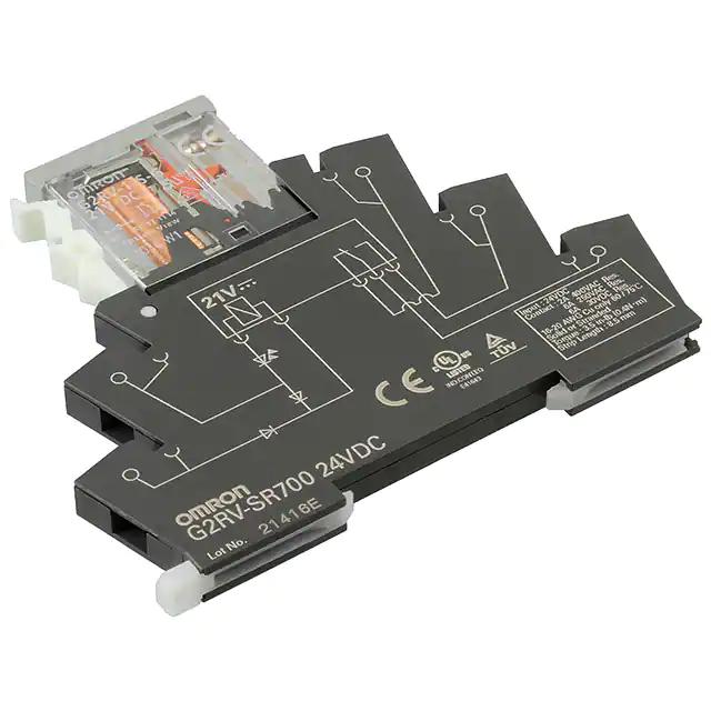 This is manufactured by Omron Automation and Safety. The manufacturer part number is G2RV-SR700 DC24. It is assigned with possible HTSUS value of 8536.41.0020. The product is rohs3 compliant. The coil voltage of the product is 24vdc. Moreover, it has screw terminal terminal style. The product has -40°c ~ 55°c operating temperature range. It has a coil current of 13.5 ma. The coil is a non latching type. The product's switching voltage is 440vac, 125vdc - max. On the other hand, 19.2 vdc is the given crucial/must operating voltage. This is basically a general purpose. It is shipped in bulk. It also has a spdt (1 form c) contact form. Its typical moisture sensitivity level is not applicable. The operating time of the product is 20 ms. While the must release voltage is a 2.4 vdc. It has a long 26 weeks standard lead time. It has a contact current rating of 6 a. The splendid features of the product include socket included. The product is available in din rail configuration. The product g2rv-sr, is a highly preferred choice for users. While 20 ms is its release time. The product is designated with the ear99 code number Moreover, it corresponds to g2r, a base product number of the product. The product is made from sturdy silver alloy materials.