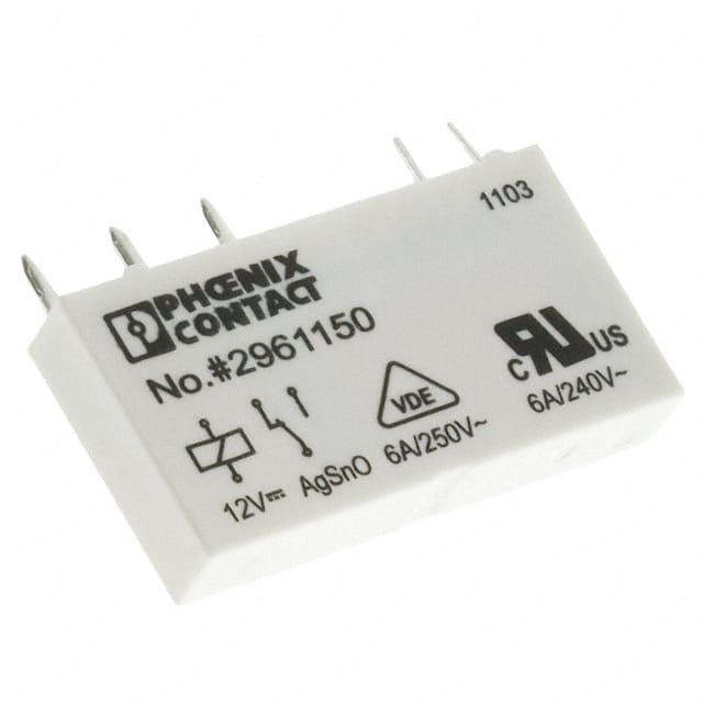 This is manufactured by Phoenix Contact. The manufacturer part number is 2961150. The product is available in pcb mount configuration. The product rel-mr- 12dc/21, is a highly preferred choice for users. The coil voltage of the product is 12v dc. Its accurate length is 5mm. In addition, the height is 28mm. The product comes in 15mm depth. It has equipped with 1 poles. The terminal is a pcb pin type. It is assigned with possible HTSUS value of 8536.41.0020. The product is rohs compliant. The coil voltage of the product is 12vdc. Moreover, it has pc pin terminal style. The product has -40°c ~ 85°c operating temperature range. It holds up to 848 ohms coil resistance. It has a coil current of 14 ma. The coil is a non latching type. The product's switching voltage is 250vac, 250vdc - max. This is basically a general purpose. It is shipped in bulk. It also has a spdt (1 form c) contact form. Its typical moisture sensitivity level is 1 (unlimited). The operating time of the product is 5 ms. It has a long 8 weeks standard lead time. It has a contact current rating of 6 a. The product is available in through hole configuration. The product rel-mr, is a highly preferred choice for users. While 2.5 ms is its release time. The product is made from sturdy silver tin oxide (agsno) materials. The product is designated with the ear99 code number