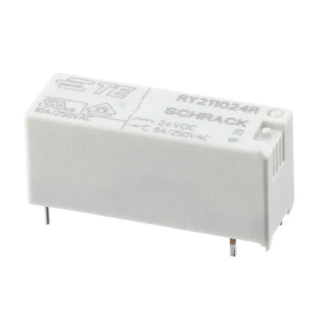 This is manufactured by TE Connectivity Potter & Brumfield Relays. The manufacturer part number is RY211024R. It is assigned with possible HTSUS value of 8536.41.0020. The product is rohs compliant. The coil voltage of the product is 24vdc. Moreover, it has pc pin terminal style. The product has -40°c ~ 70°c operating temperature range. It holds up to 2.35 kohms coil resistance. It has a coil current of 10.2 ma. The coil is a non latching type. The product's switching voltage is 400vac - max. Seal rating options: sealed - flux protection. On the other hand, 16.8 vdc is the given crucial/must operating voltage. This is basically a general purpose. It is shipped in tape & reel (tr). It also has a spdt (1 form c) contact form. Its typical moisture sensitivity level is 1 (unlimited). The operating time of the product is 9 ms. While the must release voltage is a 2.4 vdc. It has a long 96 weeks standard lead time. It has a contact current rating of 8 a. The product is available in through hole configuration. The product ry, schrack, is a highly preferred choice for users. While 5 ms is its release time. The product is made from sturdy silver nickel (agni) materials. Moreover, it corresponds to ry21, a base product number of the product. The product is designated with the ear99 code number