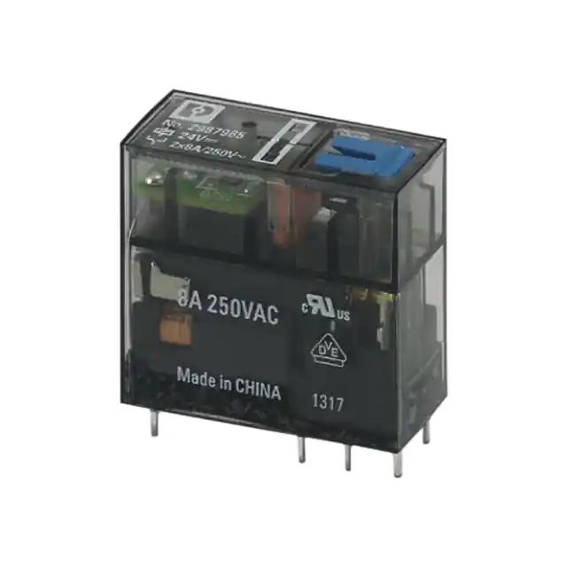This is manufactured by Phoenix Contact. The manufacturer part number is 2987985. The product is available in plug in configuration. The product rel-mr- 24dc/21-21au/ms, is a highly preferred choice for users. The coil voltage of the product is 24v dc. Its accurate length is 12.7mm. In addition, the height is 29mm. The product comes in 25mm depth. It has equipped with 2 poles. It is assigned with possible HTSUS value of 8536.41.0020. The product is rohs compliant. The coil voltage of the product is 24vdc. Moreover, it has pc pin terminal style. The product has -40°c ~ 70°c operating temperature range. It holds up to 1.33 kohms coil resistance. It has a coil current of 18 ma. The coil is a non latching type. The product's switching voltage is 250vac, 250vdc - max. This is basically a general purpose. It is shipped in bulk. It also has a dpdt (2 form c) contact form. Its typical moisture sensitivity level is 1 (unlimited). The operating time of the product is 9 ms. It has a long 8 weeks standard lead time. It has a contact current rating of 8 a. The splendid features of the product include diode, lighted indicator, mechanical indicator, test button. The product is available in through hole configuration. The product rel-mr, is a highly preferred choice for users. While 6 ms is its release time. The product is made from sturdy silver nickel (agni), gold (au) materials. The product is designated with the ear99 code number