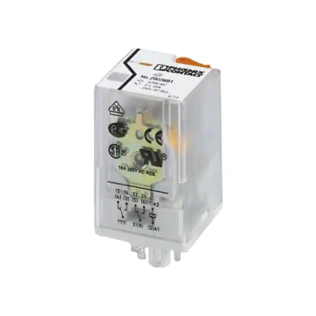 This is manufactured by Phoenix Contact. The manufacturer part number is 2903691. It is assigned with possible HTSUS value of 8536.41.0050. The product is rohs compliant. The coil voltage of the product is 120vac. Moreover, it has plug in, 8 pin (octal) terminal style. The product has -40°c ~ 55°c operating temperature range. It holds up to 5.22 kohms coil resistance. It has a coil current of 23 ma. The coil is a non latching type. The product's switching voltage is 250vac, 250vdc - max. This is basically a general purpose. It also has a dpdt (2 form c) contact form. Its typical moisture sensitivity level is 1 (unlimited). The operating time of the product is 15 ms. It has a contact current rating of 10 a. The splendid features of the product include lighted indicator, mechanical indicator, test button. The product is available in socketable configuration. The product rel-or, is a highly preferred choice for users. While 20 ms is its release time. The product is made from sturdy silver nickel (agni) materials. The product is designated with the ear99 code number