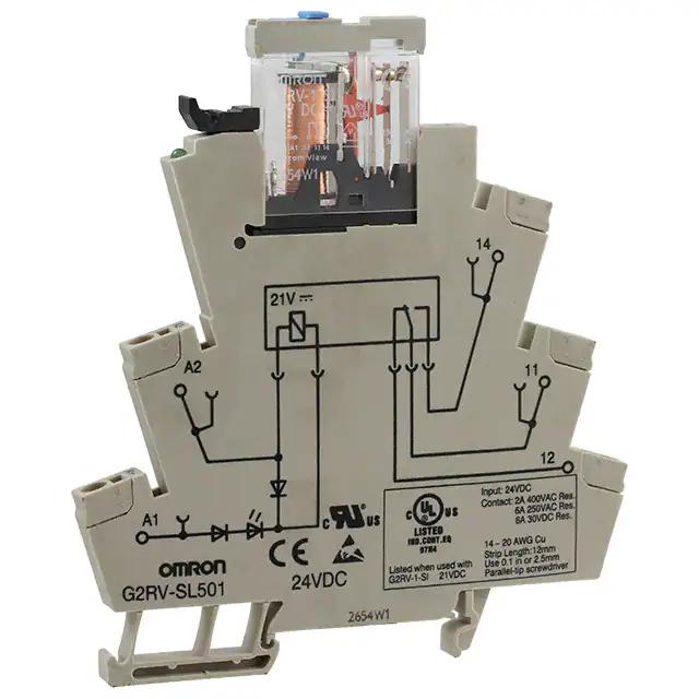 This is manufactured by Omron Automation and Safety. The manufacturer part number is G2RV-SL501-DC24. It is assigned with possible HTSUS value of 8536.49.0050. The coil voltage of the product is 24vdc. Moreover, it has spring terminal terminal style. The product has -40°c ~ 55°c operating temperature range. It has a coil current of 13.3 ma. The coil is a non latching type. The product's switching voltage is 440vac, 125vdc - max. On the other hand, 19.2 vdc is the given crucial/must operating voltage. This is basically a general purpose. It is shipped in bulk. It also has a spdt (1 form c) contact form. Its typical moisture sensitivity level is not applicable. The operating time of the product is 20 ms. While the must release voltage is a 2.4 vdc. It has a contact current rating of 6 a. The splendid features of the product include socket included, test button. The product is available in din rail configuration. The product g2rv, is a highly preferred choice for users. While 40 ms is its release time. The product is designated with the ear99 code number