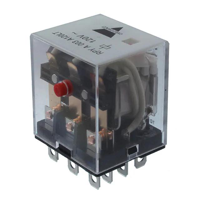 This is manufactured by Carlo Gavazzi Inc.. The manufacturer part number is RPYA003A120LT. It is assigned with possible HTSUS value of 8536.49.0075. The coil voltage of the product is 120vac. Moreover, it has plug in terminal style. In addition, it is reach unaffected. The product has -25°c ~ 55°c operating temperature range. It holds up to 2.7 kohms coil resistance. It has a coil current of 14.5 ma. The coil is a non latching type. The product's switching voltage is 250vac, 28vdc - max. On the other hand, 96 vac is the given crucial/must operating voltage. This is basically a general purpose. It is shipped in bulk. It also has a 3pdt (3 form c) contact form. Its typical moisture sensitivity level is not applicable. The operating time of the product is 20 ms. While the must release voltage is a 36 vac. It has a long 24 weeks standard lead time. It has a contact current rating of 10 a. The splendid features of the product include lighted indicator, test button. The product is available in socketable configuration. The product rpy, is a highly preferred choice for users. While 20 ms is its release time. The product is designated with the ear99 code number Moreover, it corresponds to rpya003, a base product number of the product. The product is made from sturdy silver tin oxide indium oxide (agsnoino) materials.