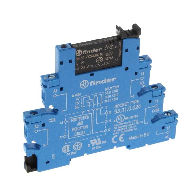 This is manufactured by Finder Relays, Inc.. The manufacturer part number is 38.51.0.024.0060. It is assigned with possible HTSUS value of 8536.41.0020. The product is rohs3 compliant. The coil voltage of the product is 24vac/dc. Moreover, it has screw terminal terminal style. In addition, it is reach unaffected. The product has -40°c ~ 70°c operating temperature range. It has a coil current of 12 ma. The coil is a non latching type. The product's switching voltage is 400vac - max. On the other hand, 19.2 vac/dc is the given crucial/must operating voltage. This is basically a general purpose. It is shipped in bulk. It also has a spdt (1 form c) contact form. Its typical moisture sensitivity level is not applicable. The operating time of the product is 5 ms. While the must release voltage is a 2.4 vac/dc. It has a long 6 weeks standard lead time. It has a contact current rating of 6 a. The splendid features of the product include socket included. The product is available in din rail configuration. The product 38, is a highly preferred choice for users. While 6 ms is its release time. The product is made from sturdy silver nickel (agni) materials. Moreover, it corresponds to 38.51.0, a base product number of the product. The product is designated with the ear99 code number