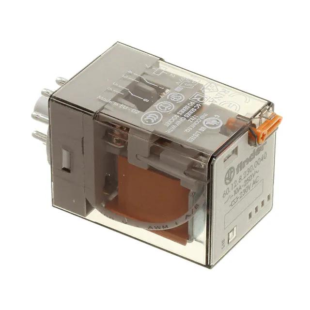 This is manufactured by Finder Relays, Inc.. The manufacturer part number is 60.12.8.230.0040. It is assigned with possible HTSUS value of 8536.49.0075. The product is rohs3 compliant. The coil voltage of the product is 230vac. Moreover, it has plug in, 8 pin (octal) terminal style. In addition, it is reach unaffected. The product has -40°c ~ 70°c operating temperature range. It holds up to 7.52 kohms coil resistance. It has a coil current of 10.5 ma. The coil is a non latching type. The product's switching voltage is 400vac - max. On the other hand, 184 vac is the given crucial/must operating voltage. This is basically a general purpose. It is shipped in bulk. It also has a dpdt (2 form c) contact form. Its typical moisture sensitivity level is not applicable. The operating time of the product is 11 ms. While the must release voltage is a 46 vac. It has a long 6 weeks standard lead time. It has a contact current rating of 10 a. The splendid features of the product include mechanical indicator, test button. The product is available in socketable configuration. The product 60, is a highly preferred choice for users. While 4 ms is its release time. The product is made from sturdy silver nickel (agni) materials. Moreover, it corresponds to 60.12.8, a base product number of the product. The product is designated with the ear99 code number