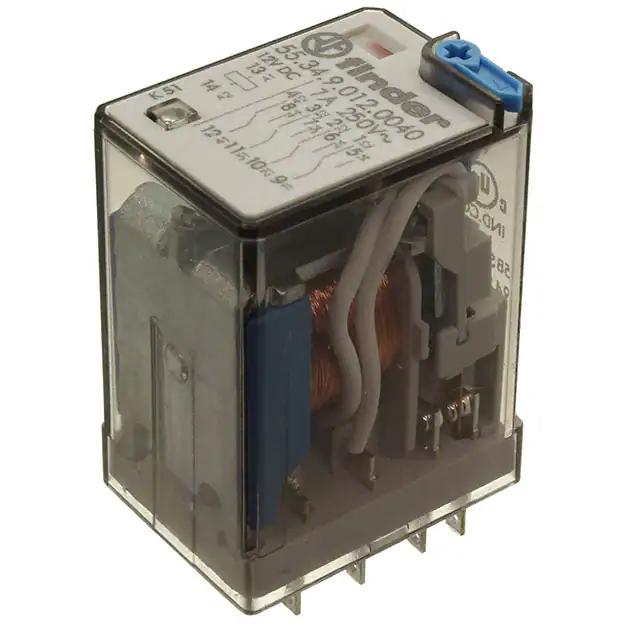 This is manufactured by Finder Relays, Inc.. The manufacturer part number is 55.34.9.012.0040. It is assigned with possible HTSUS value of 8536.41.0020. The product is rohs3 compliant. The coil voltage of the product is 12vdc. Moreover, it has plug in terminal style. In addition, it is reach unaffected. The product has -40°c ~ 85°c operating temperature range. It holds up to 140 ohms coil resistance. It has a coil current of 86 ma. The coil is a non latching type. The product's switching voltage is 250vac - max. On the other hand, 9.6 vdc is the given crucial/must operating voltage. This is basically a general purpose. It is shipped in bulk. It also has a 4pdt (4 form c) contact form. Its typical moisture sensitivity level is not applicable. The operating time of the product is 9 ms. While the must release voltage is a 2.4 vdc. It has a long 6 weeks standard lead time. It has a contact current rating of 7 a. The splendid features of the product include mechanical indicator, test button. The product is available in socketable configuration. The product 55, is a highly preferred choice for users. While 5 ms is its release time. The product is made from sturdy silver nickel (agni) materials. Moreover, it corresponds to 55.34.9, a base product number of the product. The product is designated with the ear99 code number