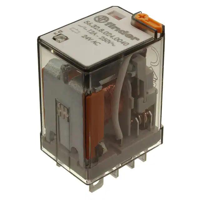 This is manufactured by Finder Relays, Inc.. The manufacturer part number is 56.32.8.024.0040. It is assigned with possible HTSUS value of 8536.41.0050. The product is rohs3 compliant. The coil voltage of the product is 24vac. Moreover, it has plug in, quick connect - 0.187" (4.7mm) terminal style. In addition, it is reach unaffected. The product has -40°c ~ 70°c operating temperature range. It has a coil current of 53 ma. The coil is a non latching type. The product's switching voltage is 400vac - max. On the other hand, 19.2 vac is the given crucial/must operating voltage. This is basically a general purpose. It is shipped in bulk. It also has a dpdt (2 form c) contact form. Its typical moisture sensitivity level is not applicable. The operating time of the product is 9 ms. While the must release voltage is a 4.8 vac. It has a long 6 weeks standard lead time. It has a contact current rating of 12 a. The splendid features of the product include mechanical indicator, test button. The product is available in socketable configuration. The product 56, is a highly preferred choice for users. While 6 ms is its release time. The product is made from sturdy silver nickel (agni) materials. Moreover, it corresponds to 56.32.8, a base product number of the product. The product is designated with the ear99 code number
