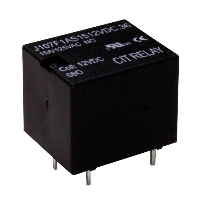 This is manufactured by CIT Relay and Switch. The manufacturer part number is J107F1AS1512VDC.36. It is assigned with possible HTSUS value of 8536.41.0050. The product is rohs compliant. The coil voltage of the product is 12vdc. Moreover, it has pc pin terminal style. In addition, it is reach unaffected. The product has -55°c ~ 125°c operating temperature range. It holds up to 400 ohms coil resistance. It has a coil current of 30 ma. The coil is a non latching type. The product's switching voltage is 380vac, 110vdc - max. Seal rating options: sealed - fully. On the other hand, 9 vdc is the given crucial/must operating voltage. This is basically a general purpose. It is shipped in tube. It also has a spst-no (1 form a) contact form. Its typical moisture sensitivity level is 1 (unlimited). The operating time of the product is 10 ms. While the must release voltage is a 1.2 vdc. It has a long 14 weeks standard lead time. It has a contact current rating of 15 a. The product is available in through hole configuration. The product j107f, is a highly preferred choice for users. While 5 ms is its release time. The coil is a class f insulation. The product is made from sturdy silver tin oxide (agsno) materials. Moreover, it corresponds to j107f1as, a base product number of the product. The product is designated with the ear99 code number