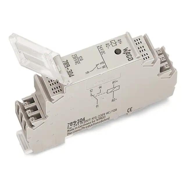 This is manufactured by WAGO Corporation. The manufacturer part number is 789-304. It is assigned with possible HTSUS value of 8536.41.0050. The product is rohs3 compliant. The coil voltage of the product is 24vdc. Moreover, it has spring terminal terminal style. It has a coil current of 19 ma. It is shipped in box. It also has a spdt (1 form c) contact form. Its typical moisture sensitivity level is not applicable. The operating time of the product is 8 ms. It has a long 12 weeks standard lead time. It has a contact current rating of 12 a. The splendid features of the product include lighted indicator. The product is available in din rail configuration. The product 789, is a highly preferred choice for users. While 6 ms is its release time. The product is designated with the ear99 code number The product is made from sturdy silver nickel (agni) materials.