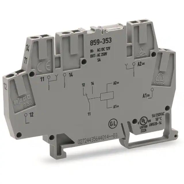 This is manufactured by WAGO Corporation. The manufacturer part number is 859-354. It is assigned with possible HTSUS value of 8536.41.0020. The product is rohs3 compliant. The coil voltage of the product is 24vac/dc. Moreover, it has spring terminal terminal style. The product has -40°c ~ 50°c operating temperature range. It has a coil current of 8 ma. The product's switching voltage is 250vac - max. This is basically a general purpose. It is shipped in box. It also has a spdt (1 form c) contact form. Its typical moisture sensitivity level is not applicable. The operating time of the product is 15 ms. It has a long 12 weeks standard lead time. It has a contact current rating of 5 a. The splendid features of the product include lighted indicator. The product is available in din rail configuration. The product 859, is a highly preferred choice for users. While 25 ms is its release time. The product is designated with the ear99 code number The product is made from sturdy silver tin oxide (agsno) materials.