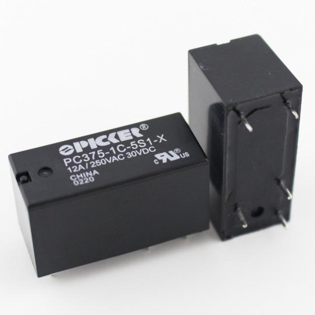 This is manufactured by Picker Components. The manufacturer part number is PC375-1C-5S1-X. It is assigned with possible HTSUS value of 8536.41.0050. The product is rohs3 compliant. The coil voltage of the product is 5vdc. Moreover, it has pc pin terminal style. In addition, it is reach unaffected. The product has -40°c ~ 85°c operating temperature range. It holds up to 61 ohms coil resistance. It has a coil current of 82 ma. The coil is a non latching type. The product's switching voltage is 380vac, 110vdc - max. Seal rating options: sealed - fully. On the other hand, 3.5 vdc is the given crucial/must operating voltage. This is basically a general purpose. It is shipped in tube. It also has a spdt (1 form c) contact form. Its typical moisture sensitivity level is 1 (unlimited). The operating time of the product is 15 ms. While the must release voltage is a 0.5 vdc. It has a long 29 weeks standard lead time. It has a contact current rating of 16 a. The product is available in through hole configuration. While 8 ms is its release time. The coil is a class f insulation. The product is made from sturdy silver tin oxide (agsno) materials. The product is designated with the ear99 code number