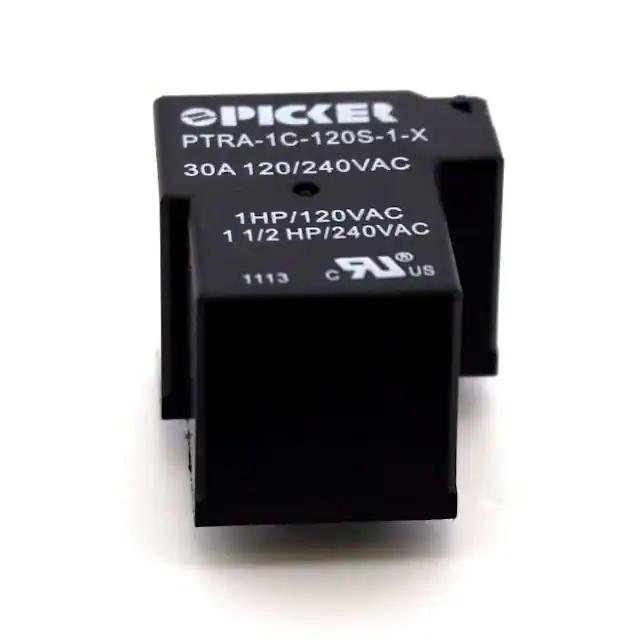 This is manufactured by Picker Components. The manufacturer part number is PTRA-1C-120S-1-X. It is assigned with possible HTSUS value of 8536.49.0075. The product is rohs3 compliant. The coil voltage of the product is 120vac. Moreover, it has pc pin terminal style. In addition, it is reach unaffected. The product has -55°c ~ 100°c operating temperature range. It holds up to 3.04 kohms coil resistance. It has a coil current of 39.5 ma. The coil is a non latching type. The product's switching voltage is 300vac, 110vdc - max. Seal rating options: sealed - fully. On the other hand, 90 vac is the given crucial/must operating voltage. This is basically a general purpose. It is shipped in tube. It also has a spdt (1 form c) contact form. Its typical moisture sensitivity level is 1 (unlimited). The operating time of the product is 15 ms. While the must release voltage is a 36 vac. It has a long 23 weeks standard lead time. It has a contact current rating of 40 a. The product is available in through hole configuration. While 10 ms is its release time. The coil is a class f insulation. The product is made from sturdy silver cadmium oxide (agcdo) materials. The product is designated with the ear99 code number