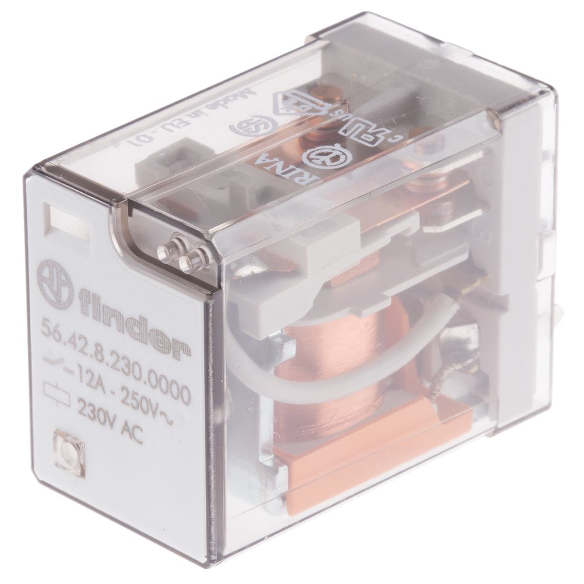 This is DPDT PCB Mount Non-Latching Relay 230V ac Coil 12 A manufactured by Finder. The manufacturer part number is 56.42.8.230.0000. The product is available in pcb mount configuration. Robust coil power of 1.5w. The product 56 series, is a highly preferred choice for users. The coil voltage of the product is 230v ac. Its accurate length is 20.7mm. In addition, the height is 36.8mm. The product comes in 27.7mm depth. It has equipped with 2 poles. The terminal is a through hole type. It holds up to 17000ω coil resistance.