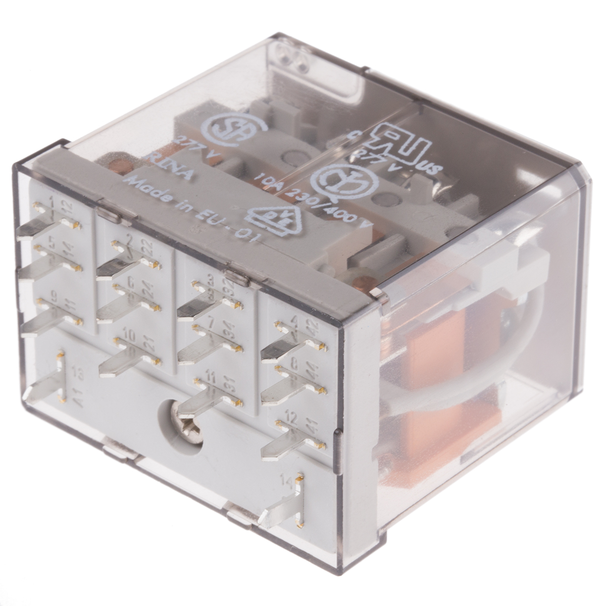 This is 4PDT Non-Latching Relay PCB Mount 230V ac Coil 12 A manufactured by Finder. The manufacturer part number is 56.44.8.230.0000. The product is available in pcb mount configuration. Robust coil power of 2w. The product 56 series, is a highly preferred choice for users. The coil voltage of the product is 230v ac. Its accurate length is 40.8mm. In addition, the height is 37.1mm. The product comes in 27.7mm depth. It has equipped with 4 poles. The terminal is a through hole type. It holds up to 7700ω coil resistance.