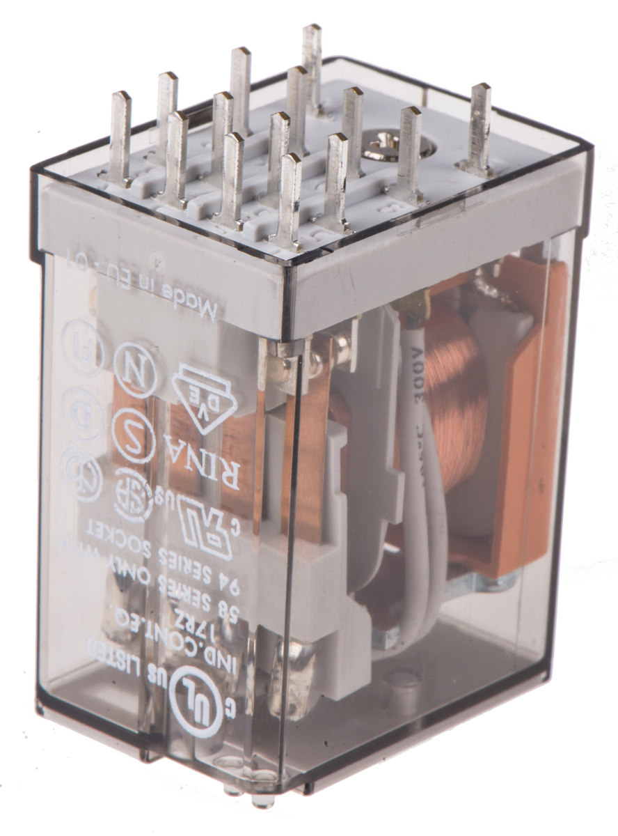 This is 4PDT Non-Latching Relay PCB Mount 24V ac Coil 7 A manufactured by Finder. The manufacturer part number is 55.14.8.024.0000. The product is available in pcb mount configuration. Robust coil power of 1.5w. The product 55 series, is a highly preferred choice for users. The coil voltage of the product is 24v ac. Its accurate length is 27.7mm. In addition, the height is 35.8mm. The product comes in 20.7mm depth. It has equipped with 4 poles. The terminal is a through hole type. It holds up to 190ω coil resistance.
