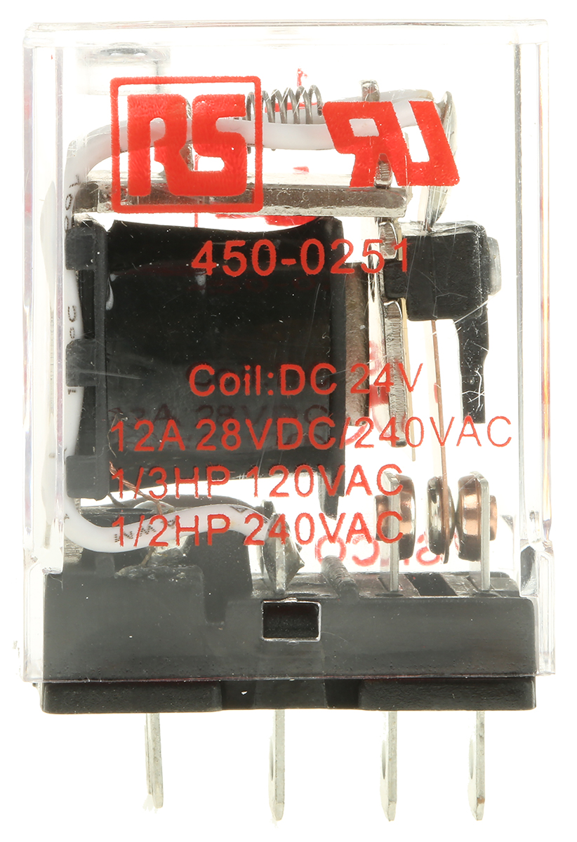 This is SPDT Non-Latching Relay PCB Mount 24V dc Coil 15 A General Purpose Relay manufactured by RS Pro. The manufacturer part number is 450-0251. The product is available in pcb mount configuration. Robust coil power of 900mw. The coil voltage of the product is 24v dc. Its accurate length is 27mm. In addition, the height is 35.6mm. The product comes in 13.5mm depth. It has equipped with 1 poles. The terminal is a pcb pin type. It holds up to 750ω coil resistance.