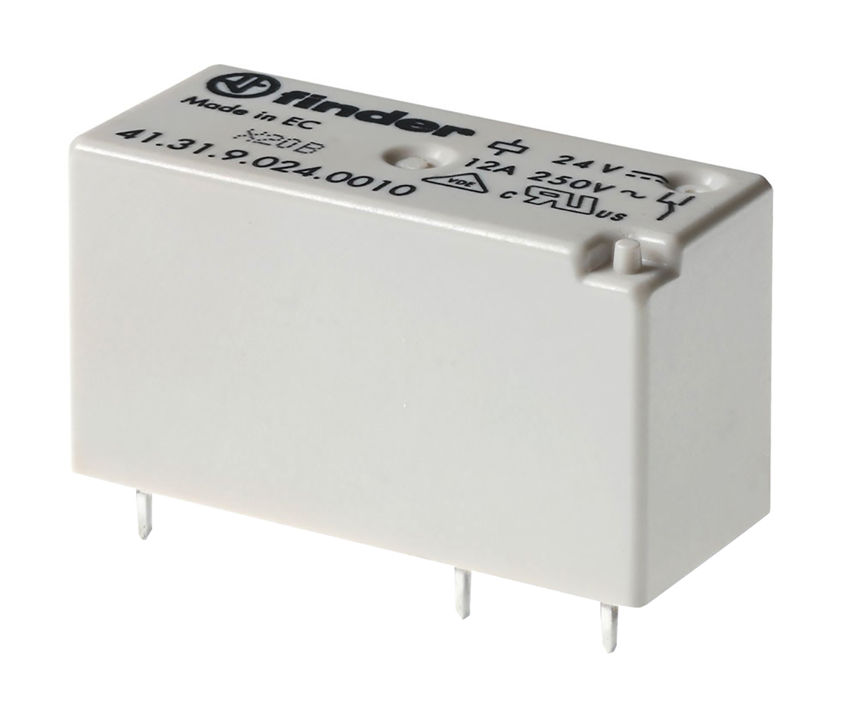 This is SPDT PCB Mount Power Relay Module PCB Pin 12A Maximum of 24V ac manufactured by Finder. The manufacturer part number is 41.31.8.024.0000. The product is available in pcb mount configuration. The product 41 series, is a highly preferred choice for users. The coil voltage of the product is 24v ac. Its accurate length is 29mm. In addition, the height is 15.7mm. The product comes in 12.6mm depth. It has equipped with 1 poles. The terminal is a pcb pin type.