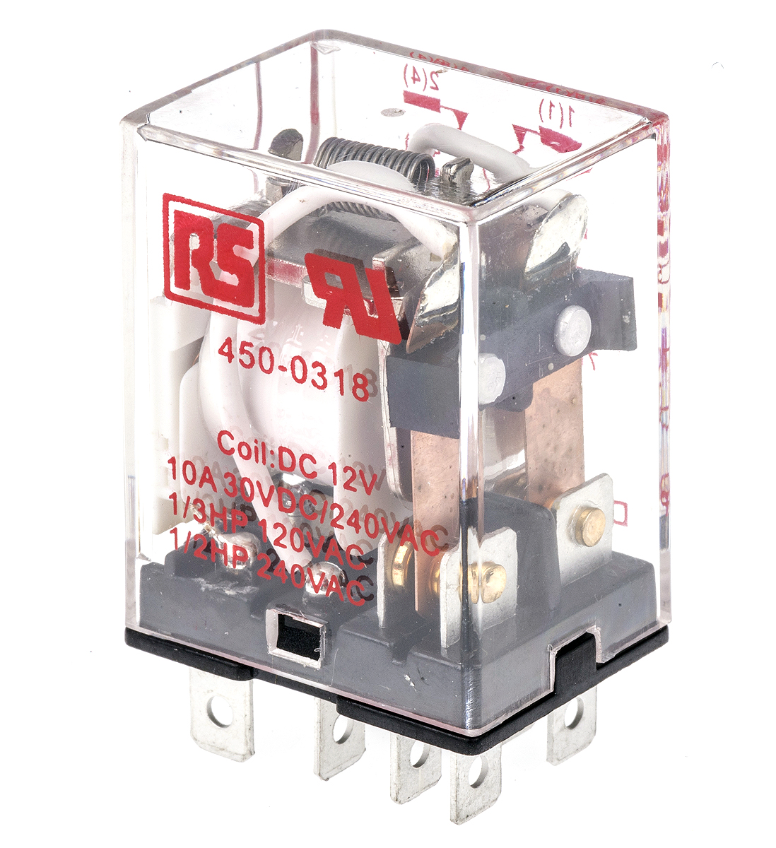 This is DPDT Non-Latching Relay Plug In 12V dc Coil 10 A General Purpose Relay manufactured by RS Pro. The manufacturer part number is 450-0318. The product is available in plug in configuration. Robust coil power of 900mw. The coil voltage of the product is 12v dc. Its accurate length is 28mm. In addition, the height is 36mm. The product comes in 21.5mm depth. It has equipped with 2 poles. The terminal is a pcb pin type. It holds up to 160ω coil resistance.