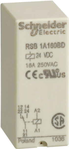 This is RSB Series 24V dc PCB Mount Interface Relay Module SPDT Through Hole manufactured by Schneider Electric. The manufacturer part number is RSB1A160BD. The product is available in pcb mount configuration. The product rsb, is a highly preferred choice for users. The coil voltage of the product is 24v dc. The terminal is a through hole type.