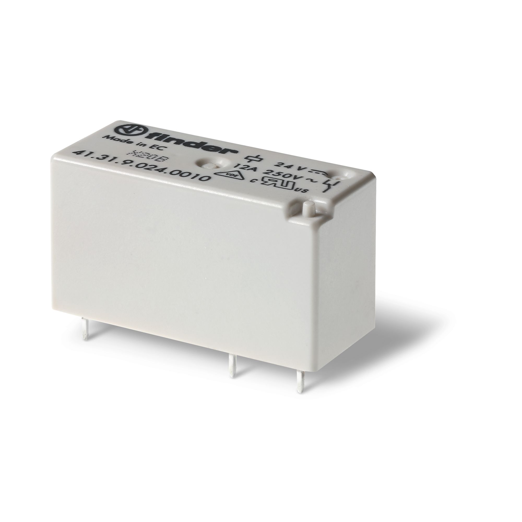This is PCB Mount Relay 24V dc Coil 12A Switching Current SPDT manufactured by Finder. The manufacturer part number is 413190240011. The product is available in pcb mount configuration. The coil voltage of the product is 24v dc. It has equipped with 1 poles.