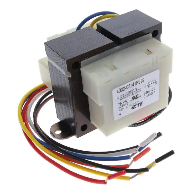 This is manufactured by TE Connectivity Potter & Brumfield Relays. The manufacturer part number is 4000-08J41K999. As well as [Secondary Wing(s)]. It is assigned with possible HTSUS value of 8504.31.4065. The product is rohs compliant. Moreover, it has wire leads terminal style. Features primary voltage 120v, 208v, 240v, 480v. It comes in laminated core configuration. Features single. Center Tap - no. Full load voltage - secondary includes 24v. It is shipped in box. The product's diameters include 101.60mm l x 63.50mm w. Its typical moisture sensitivity level is not applicable. The product is available in chassis mount configuration. The product 4000, products unlimited, is a highly preferred choice for users. The maximum power of the product is 75va. Moreover, it corresponds to 4000, a base product number of the product. The product is designated with the ear99 code number