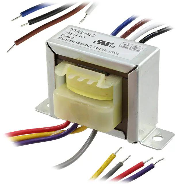 This is manufactured by Triad Magnetics. The manufacturer part number is VPL24-400. As well as [Secondary Wing(s)]. It is assigned with possible HTSUS value of 8504.31.4035. The product is rohs3 compliant. Moreover, it has wire leads terminal style. The maximum product's output current is 410ma. Features primary voltage 115v, 230v. It has the maximum seated height of 44.45mm It comes in laminated core configuration. Features dual. In addition, it is reach unaffected. Center Tap - no. Full load voltage - secondary includes 24v. It is shipped in box. The product's diameters include 36.52mm l x 71.44mm w. It has a long 23 weeks standard lead time. 3500vrms of isolation voltage. Its typical moisture sensitivity level is not applicable. The product is available in chassis mount configuration. The typical product's weight is 0.7 lb (317.51 g). The product chassis mount: world series™, is a highly preferred choice for users. The maximum power of the product is 10.0va. The product is designated with the ear99 code number