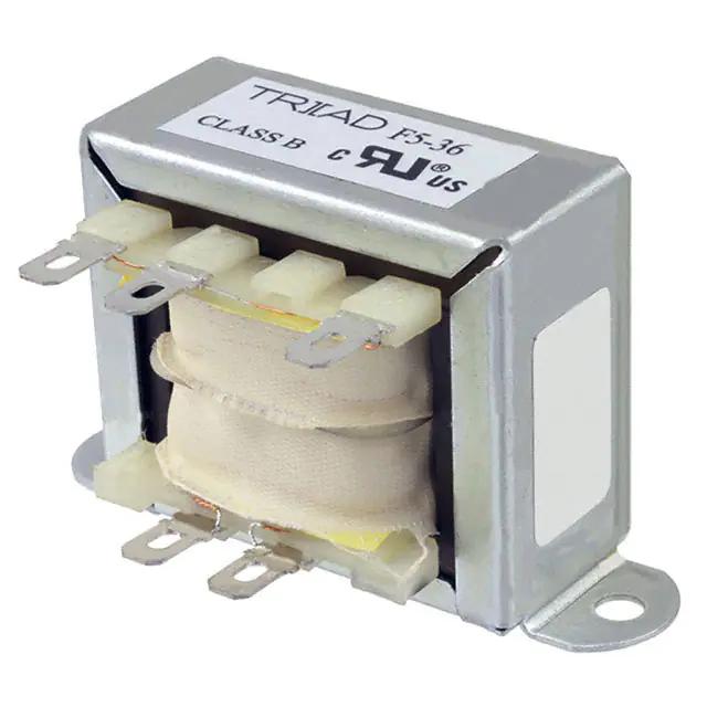This is manufactured by Triad Magnetics. The manufacturer part number is F5-36. As well as [Secondary Wing(s)]. It is assigned with possible HTSUS value of 8504.31.4035. The product is rohs3 compliant. Moreover, it has solder, quick connect - 0.187" (4.7mm) terminal style. The maximum product's output current is 350ma. Features primary voltage 115v. It has the maximum seated height of 41.28mm It comes in laminated core configuration. Features single. In addition, it is reach unaffected. Center Tap - yes. Full load voltage - secondary includes 36v. It is shipped in bulk. The product's diameters include 71.42mm l x 34.93mm w. It has a long 23 weeks standard lead time. 2500vac of isolation voltage. Its typical moisture sensitivity level is not applicable. The product is available in chassis mount configuration. The typical product's weight is 0.7 lb (317.51 g). The product quick pack, is a highly preferred choice for users. The maximum power of the product is 12va. The product is designated with the ear99 code number