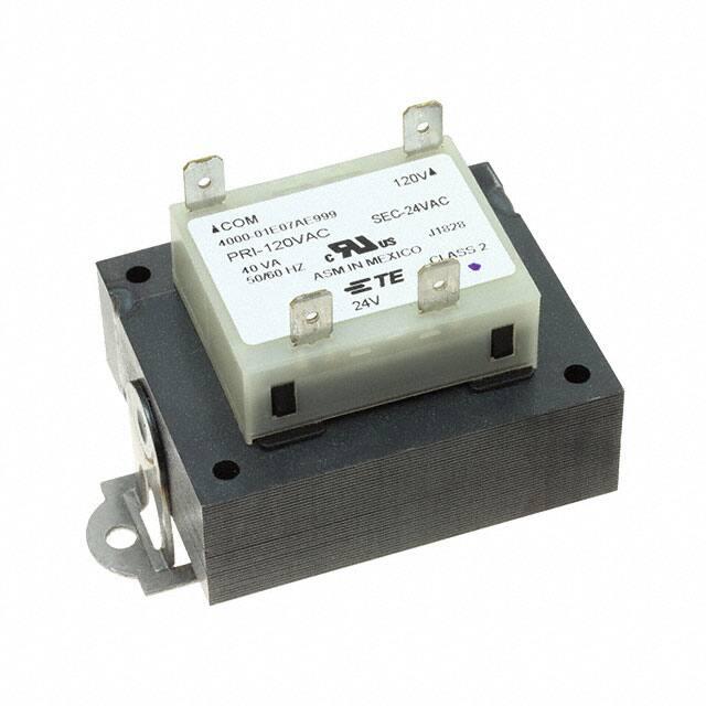 This is manufactured by TE Connectivity Potter & Brumfield Relays. The manufacturer part number is 4000-01E07AE999. As well as [Secondary Wing(s)]. It is assigned with possible HTSUS value of 8504.31.4065. The product is rohs compliant. Moreover, it has solder, quick connect terminal style. Features primary voltage 120v. It has the maximum seated height of 61.47mm It comes in laminated core configuration. Features single. Center Tap - no. Full load voltage - secondary includes 24v. It is shipped in bulk. The product's diameters include 90.47mm l x 55.58mm w. Its typical moisture sensitivity level is not applicable. The product is available in chassis mount configuration. The product 4000, products unlimited, is a highly preferred choice for users. The maximum power of the product is 40va. Moreover, it corresponds to 4000, a base product number of the product. The product is designated with the ear99 code number