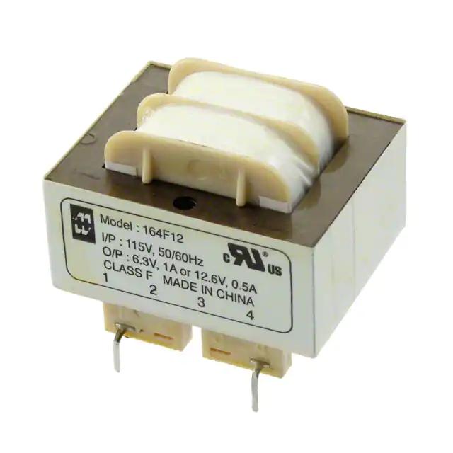 This is manufactured by Hammond Manufacturing. The manufacturer part number is 164F12. As well as [Secondary Wing(s)]. It is assigned with possible HTSUS value of 8504.31.4035. The product is rohs3 compliant. Moreover, it has pc pin terminal style. The maximum product's output current is parallel 1a, series 500ma. Features primary voltage 115v. It has the maximum seated height of 33.32mm It comes in laminated core configuration. Features single. In addition, it is reach unaffected. Center Tap - no. Full load voltage - secondary includes parallel 6.3v, series 12.6v. It is shipped in bulk. The product's diameters include 41.28mm l x 33.32mm w. It has a long 12 weeks standard lead time. 2500vrms of isolation voltage. Its typical moisture sensitivity level is 1 (unlimited). The product is available in through hole configuration. The typical product's weight is 0.44 lb (199.58 g). The product 164, is a highly preferred choice for users. The maximum power of the product is 6va. The product is designated with the ear99 code number