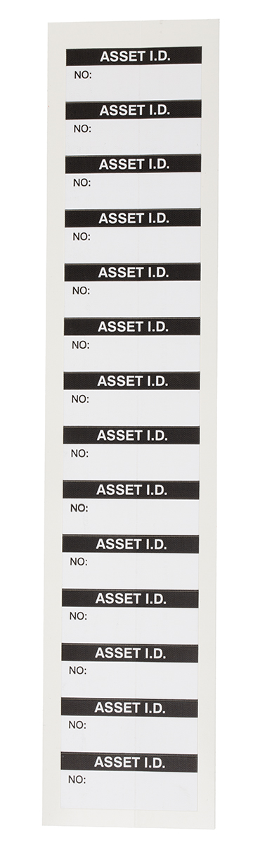 This is Pre-Printed Adhesive Label Asset Id. Quantity: 140 manufactured by RS Pro. The manufacturer part number is 450-6265. Furthermore, the product is 15mm wide. Its accurate length is 38mm.