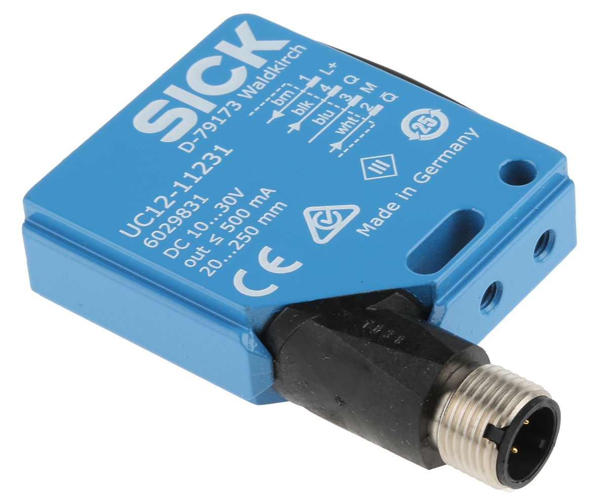 This is Ultrasonic Sensor Block 20 → 150 mm PNP 4-Pin M12 Connector IP67 manufactured by Sick. The manufacturer part number is UC12-11231. Its accurate length is 50.5mm. Furthermore, it has apnp output. The product also features robust die cast zinc housing material. Furthermore, the product is 43.5mm wide. The product comes in 15mm depth. Whereas, the minimum operating temperature of the product is -25°c. It has a maximum operating temperature of +70°c. The terminal is a 4-pin m12 connector type.