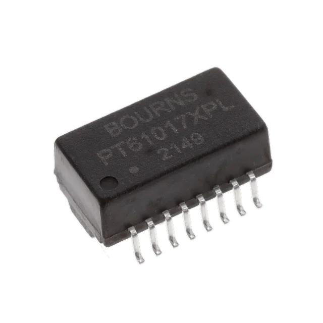 This is manufactured by Bourns Inc.. The manufacturer part number is PT61017XPEL. It is assigned with possible HTSUS value of 8504.31.2000. The product is rohs3 compliant. The product has -40°c ~ 85°c operating temperature range. It has the maximum seated height of 0.222" (5.65mm) In addition, it is reach unaffected. The product has a 350µh inductance value. It is shipped in tape & reel (tr). The product's diameters include 0.504" l x 0.272" w (12.80mm x 6.90mm). It is a lan 10/100 base-t transformer. The typical primary and secondary turn ratio is 1:1ct. It has a long 24 weeks standard lead time. Its typical moisture sensitivity level is 1 (unlimited). The product is available in surface mount configuration. The product pt, is a highly preferred choice for users. The product is designated with the ear99 code number