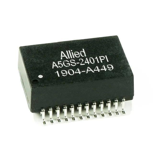 This is manufactured by Allied Components International. The manufacturer part number is A5GS-2401PI. It is assigned with possible HTSUS value of 8517.79.0000. The product is rohs3 compliant. The product has -40°c ~ 85°c operating temperature range. It has the maximum seated height of 0.270" (6.85mm) The product has a 160µh inductance value. It is shipped in tape & reel (tr). The product's diameters include 0.728" l x 0.492" w (18.50mm x 12.50mm). It is a lan 5g base-t, power over ethernet (poe) transformer. The typical primary and secondary turn ratio is 1ct:1ct. Its typical moisture sensitivity level is 1 (unlimited). The product is available in surface mount configuration. The product is designated with the ear99 code number
