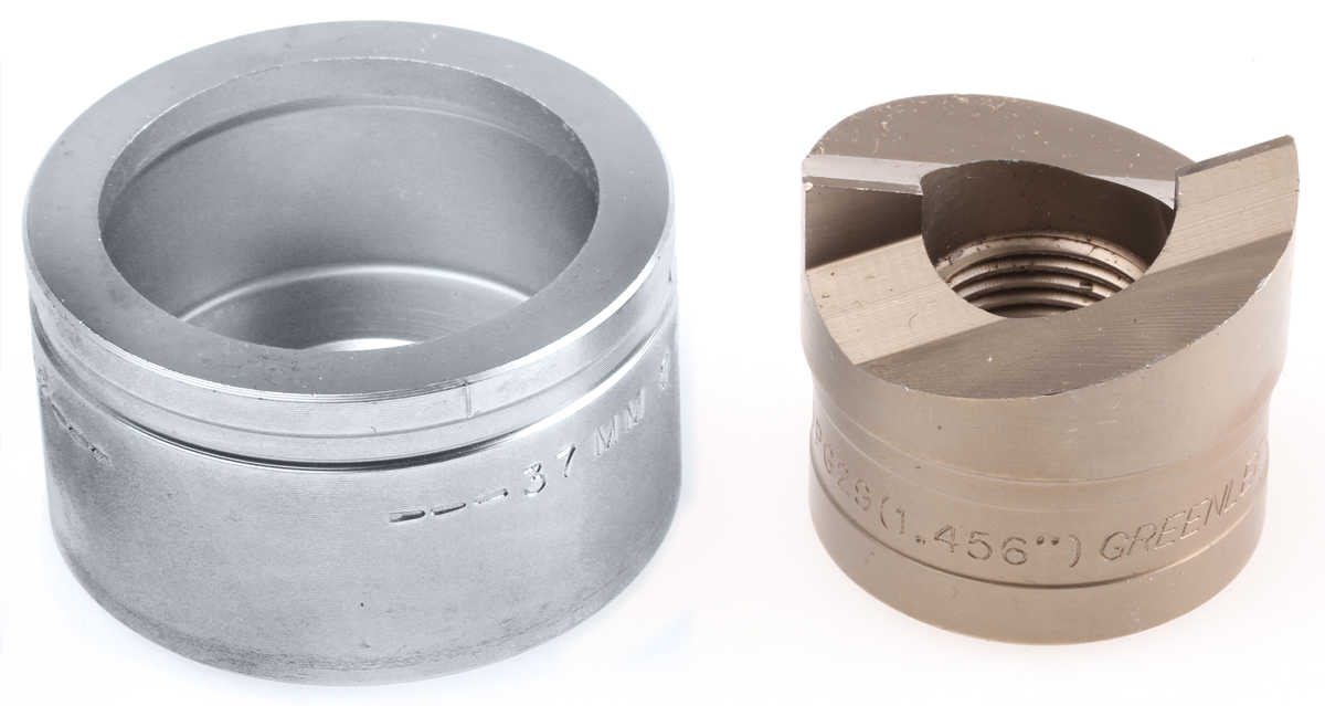 This is 37mm Hydraulic Circular Punch and Die Tool manufactured by Greenlee. The manufacturer part number is 50069608.