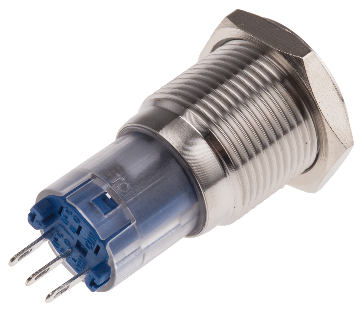 This is SPDT On-Momentary Push Button Switch IP65 IP67 16 (Dia.)mm Panel Mount 250V ac manufactured by RS Pro. The manufacturer part number is 811-8382. The product is available in panel mount configuration. Moreover, the product has a nominal 250v ac voltage rating. The terminal is a solder type. The product is made from sturdy sliver alloy materials.