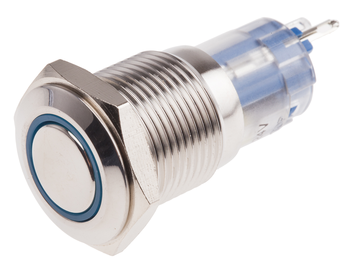 This is SPDT On-On Push Button Switch IP65 IP67 16 (Dia.)mm Panel Mount Blue LED 250V ac manufactured by RS Pro. The manufacturer part number is 811-8398. The product is available in panel mount configuration. Moreover, the product has a nominal 250v ac voltage rating. The terminal is a solder type. The product is made from sturdy sliver alloy materials.