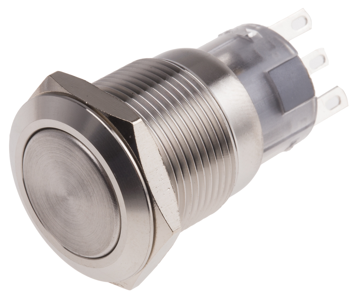 This is SPDT On-On Push Button Switch IP65 IP67 19 (Dia.)mm Panel Mount 250V ac manufactured by RS Pro. The manufacturer part number is 811-8575. The product is available in panel mount configuration. Moreover, the product has a nominal 250v ac voltage rating. The terminal is a quick connect type. The product is made from sturdy sliver alloy materials.