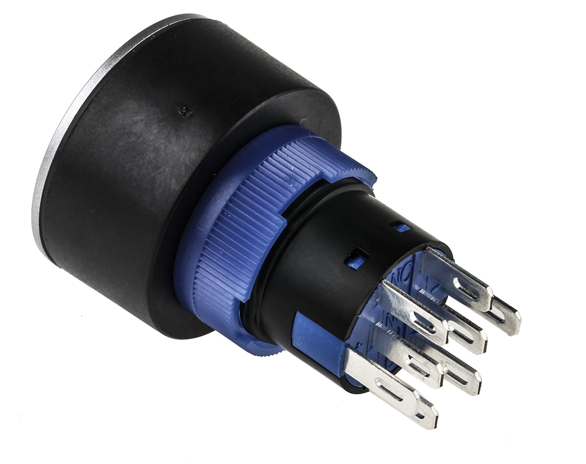 This is 2 Poles + Lock + Green LED 24V manufactured by RS Pro. The manufacturer part number is 175-8398. The product is available in panel mount configuration. Moreover, the product has a nominal 250v ac voltage rating. The terminal is a solder type. Legend Information: power symbol. The product is made from sturdy brass materials.