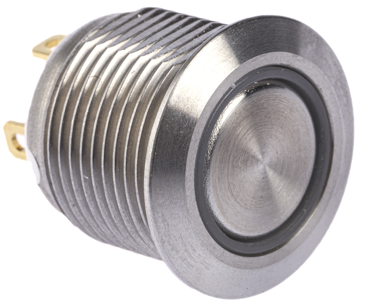 This is FLAT Push Button with Ring + Red LED manufactured by RS Pro. The manufacturer part number is 175-9504. The product is available in panel mount configuration. Moreover, the product has a nominal 36v dc voltage rating. The terminal is a solder type. The product is made from sturdy silver alloy materials.