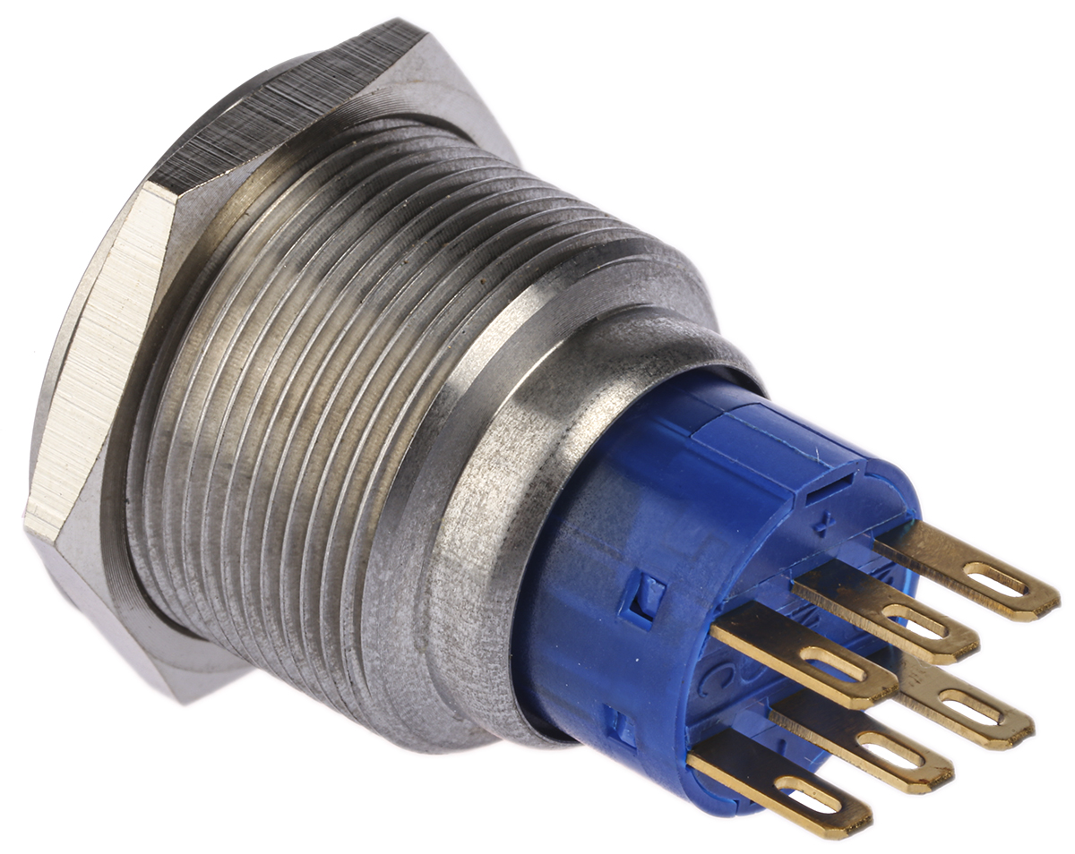 This is 2NO/2NC Momentary Push Button Switch IP67 22.2 Dia.mm Panel Mount 250V ac manufactured by RS Pro. The manufacturer part number is 175-9271. The product is available in panel mount configuration. Moreover, the product has a nominal 250v ac voltage rating. The terminal is a solder type. The product is made from sturdy copper materials.